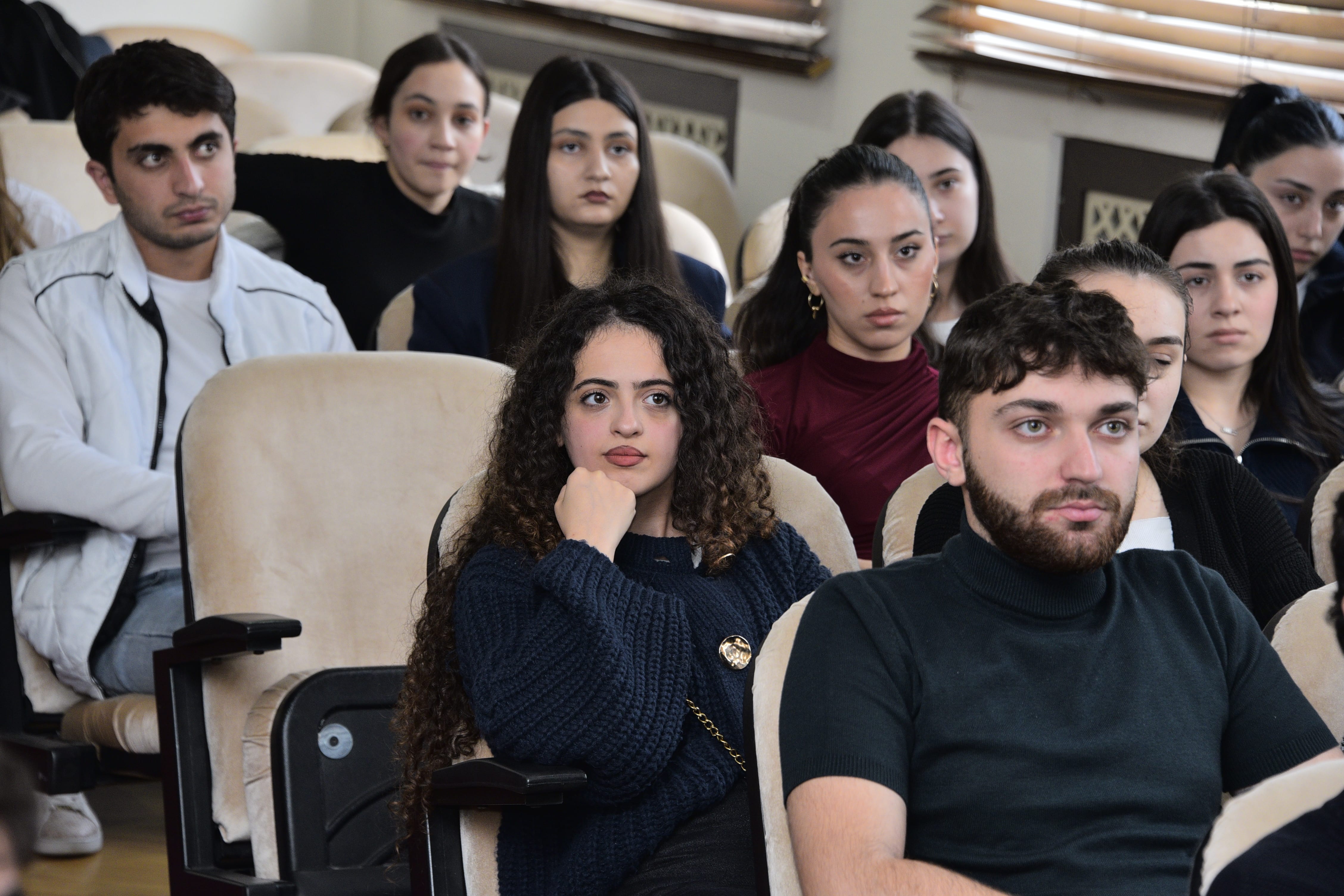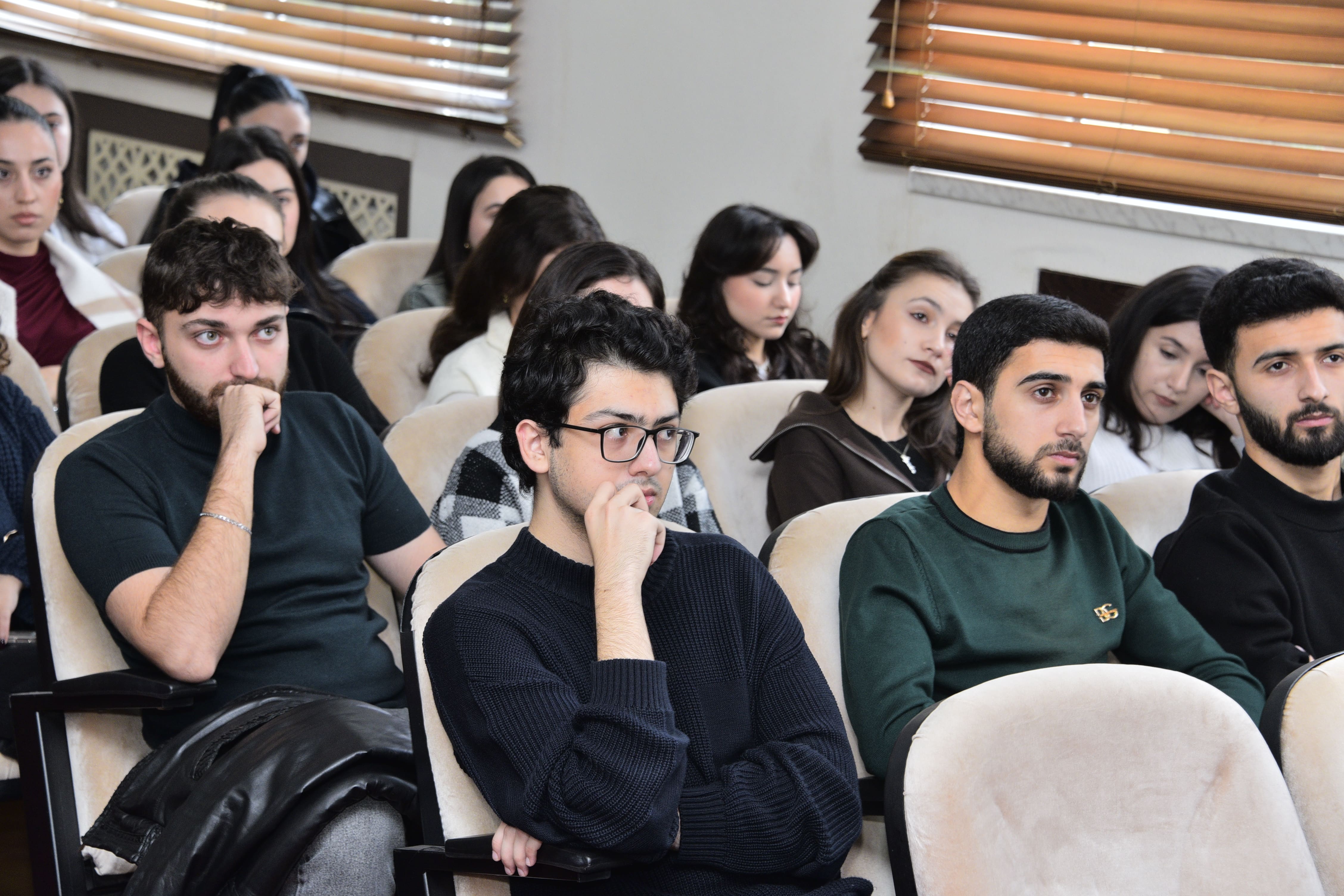 Noyabrın 27-də Sumqayıt Dövlət Universitetində (SDU) ADA Universitetinin magistratura səviyyəsində təklif etdiyi ixtisaslar, yeni qəbul qaydaları və təqaüd proqramları barədə məlumat vermək məqsədilə görüş keçirilib. Tədbiri Sosial məsələlər və ictimaiyyətlə əlaqələr üzrə prorektor, dosent Elmar Xəlilov açaraq qonaqları və iştirakçıları salamlayıb, SDU ilə ADA Universitetinin birgə əməkdaşlığından danışıb. Sumqayıt Dövlət Universitetinin təhsil imkanları, eləcə də beynəlxalq reytinqdəki mövqeyi haqqında məlumat verib. Tədris Metodiki Mərkəzin direktoru, iqtisad elmləri üzrə fəlsəfə doktoru Elnarə Məmmədova çıxışında SDU-da tətbiq edilən müasir tədris strategiyalarının tələbələrin gələcək karyera uğurlarında oynadığı roldan bəhs edib. Sonra ADA Universitetinin Tələbə Qəbulu Şöbəsinin əməkdaşı Mahnur Abbasova universitetin akademik fəaliyyəti, tədris modeli, magistratura proqramları, yeni qəbul tələbləri və təqaüd imkanları barədə ətraflı təqdimatla çıxış edib. O, həmçinin ADA Universitetinin beynəlxalq əməkdaşlıq əlaqələri, tələbələr üçün yaradılmış innovativ mühit və karyera dəstəyi mexanizmləri barədə məlumat verib. Daha sonra ADA Universitetinin müəllimi Aygün Hüseynli “Akademik yazının əsasları” mövzusunda təqdimatla çıxış edib. O, akademik yazının strukturu, mənbələrlə işləmə qaydaları, sitat gətirmə prinsipləri və elmi üslubun formalaşdırılması kimi mühüm nüansları iştirakçıların diqqətinə çatdırıb. Tədbir interaktiv şəkildə davam edib. Sonda aktiv tələbələrə hədiyyələr təqdim edilib.