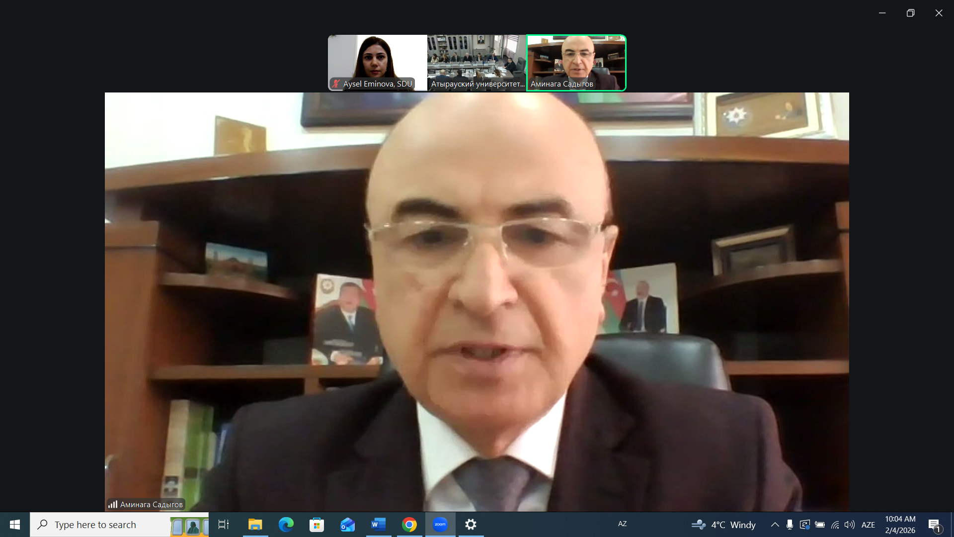 Tədbir çərçivəsində hazırda Sumqayıt Dövlət Universiteti (SDU) ilə Qazaxıstan Respublikasının Xalel Dosmuxamedov adına Atırau Dövlət Universiteti arasında həyata keçirilən akademik mübadilə proqramı çərçivəsində Qazaxıstanda səfərdə olan SDU-nun Biznesin idarə edilməsi kafedrasının professoru Şəfa Əliyev və Tarix, coğrafiya və metodika kafedrasının dosenti Yusifəli Həsənov çıxış ediblər. Şəfa Əliyev Azərbaycan-Qazaxıstan iqtisadi əlaqələrinin müasir strateji aspektlərinə həsr olunmuş geniş təqdimatla çıxış edərək iki ölkə arasında iqtisadi əməkdaşlığın perspektivlərini təhlil edib. Yusifəli Həsənov isə Azərbaycan və Qazaxıstan arasında təhsil və elm sahəsində əməkdaşlığın əhəmiyyətindən bəhs edərək, beynəlxalq Heydər Əliyev təqaüd proqramının uzunmüddətli, davamlı və uğurlu bir əməkdaşlıq modeli kimi xüsusi əhəmiyyət daşıdığını vurğulayıb.