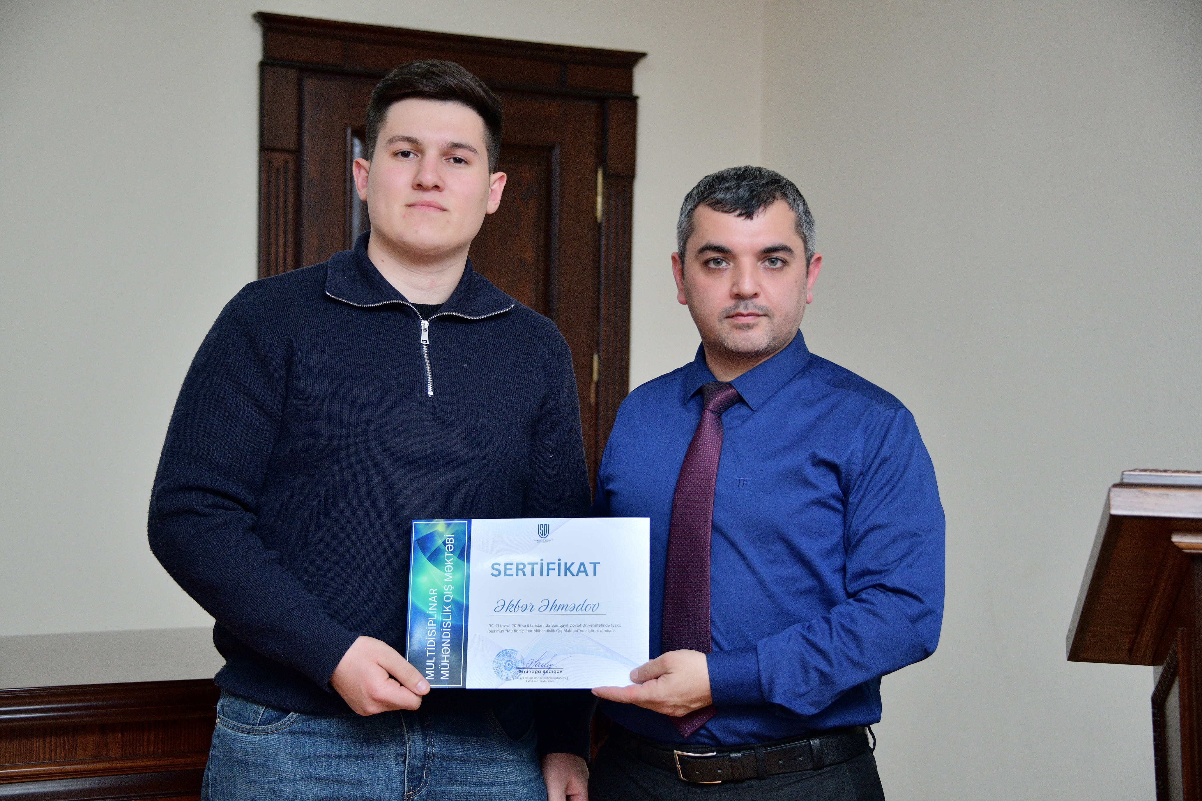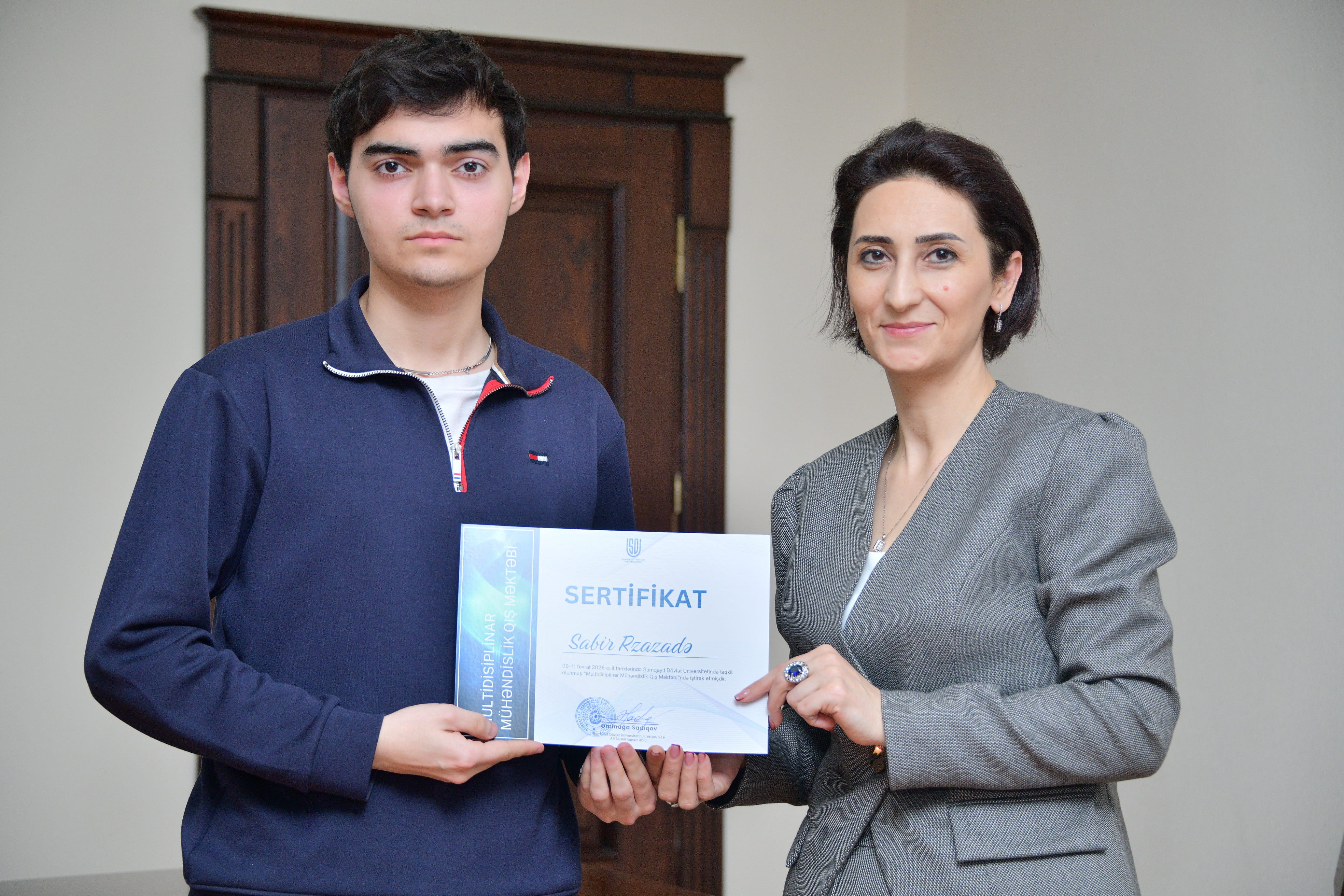 Sumqayıt Dövlət Universitetində (SDU) keçirilən Multidisiplinar Mühəndislik Qış Məktəbi uğurla yekunlaşıb. Elm və sənaye arasında sistemli əməkdaşlığın gücləndirilməsini, nəzəri biliklərlə praktik bacarıqların inteqrasiyasını hədəfləyən Qış Məktəbi mühəndislik ixtisasında təhsil alan tələbələr üçün strateji əhəmiyyətli akademik platforma kimi dəyərləndirilir. Bağlanış mərasimində çıxış edən SDU-nun rektoru, v.i.e., AMEA-nın müxbir üzvü Əminağa Sadıqov Qış Məktəbinin SDU-nun inkişaf strategiyasının mühüm istiqamətlərindən biri olduğunu bildirib. O vurğulayıb ki, müasir dövrdə mühəndis kadrların hazırlanması yalnız ixtisas biliklərinin ötürülməsi ilə məhdudlaşmır, eyni zamanda multidisiplinar düşüncə, analitik təhlil bacarığı, innovativ yanaşma və real sektorla effektiv əməkdaşlıq modelinin formalaşdırılmasını zəruri edir. Əminağa Sadıqov qeyd edib ki, SDU-da universitet-sənaye əməkdaşlığı prioritet istiqamət kimi müəyyənləşdirilib və bu model tələbələrin əmək bazarına hazır, rəqabətqabiliyyətli mütəxəssis kimi formalaşmasına xidmət edir. O, ölkədə həyata keçirilən struktur islahatların, xüsusilə Prezident İlham Əliyevin rəhbərliyi ilə icra olunan rəqəmsal inkişaf strategiyasının mühəndislik təhsilinə yeni çağırışlar müəyyən etdiyini diqqətə çatdırıb. Süni intellekt texnologiyalarının tətbiqi, data əsaslı idarəetmə sistemlərinin qurulması və rəqəmsal transformasiya prosesləri mühəndis kadrların hazırlığında keyfiyyətcə yeni mərhələnin başlanğıcını təşkil edir. Əminağa Sadıqov çıxışında vurğulayıb ki, müasir mühəndis yalnız texniki biliklərə malik mütəxəssis deyil, həm də strateji düşünən, texnoloji yenilikləri tətbiq etməyi bacaran və qlobal çağırışlara adekvat cavab verən peşəkardır. O, 44 günlük Vətən müharibəsində qazanılmış tarixi Qələbənin yüksək texnoloji hazırlıq, milli birlik və güclü dövlətçilik modelinin nəticəsi olduğunu qeyd edərək gəncləri bilik və bacarıqlarını davamlı şəkildə inkişaf etdirməyə çağırıb.