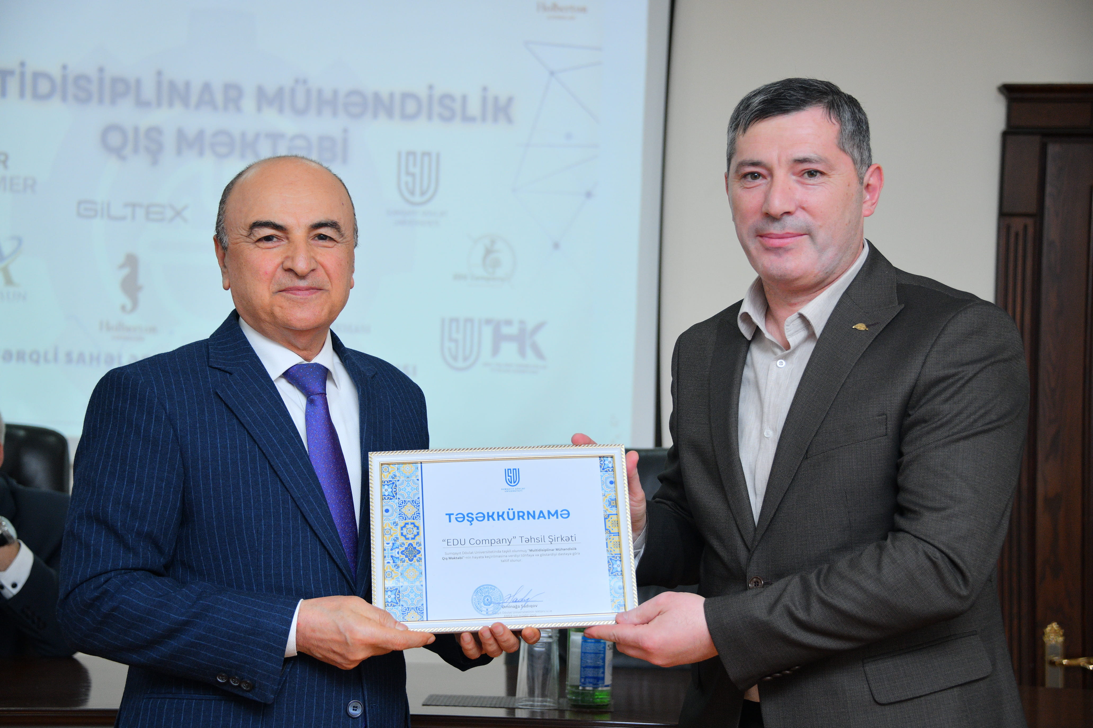 Tədbirdə çıxış edən “Qartal” tikinti şirkətinin direktoru Şahin Məmmədov rəhbərlik etdiyi qurumun həyata keçirdiyi layihələr barədə məlumat verib, SDU ilə əməkdaşlığın real sektor üçün ixtisaslı kadr hazırlığı baxımından əhəmiyyətini vurğulayıb. Digər tərəfdaş müəssisələrin nümayəndələri də bu cür təşəbbüslərin davamlı xarakter daşımasının vacibliyini qeyd edərək universitetlə əməkdaşlığın genişləndirilməsində maraqlı olduqlarını bildiriblər. Mühəndislik fakültəsinin dekanı, dosent Ulduz Ağayev Qış Məktəbi çərçivəsində tələbələrin nümayiş etdirdiyi fəallığı yüksək qiymətləndirərək qeyd edib ki, əldə olunan bilik və praktik təcrübə onların peşəkar kompetensiyalarının formalaşmasında mühüm rol oynayacaq. Sonda Qış Məktəbinin təşkilinə dəstək göstərən “SOCAR Polymer”, “GİLTEX”, “Azərsun Holding”, “Qartal” tikinti firması, “EDU Company” və “Holberton School” tərəfdaş qurumlara təşəkkürnamələr təqdim olunub, fəal iştirak edən tələbələr sertifikatlarla təltif edilib. Beləliklə, Multidisiplinar Mühəndislik Qış Məktəbi SDU-da elmi-pedaqoji mühitin gücləndirilməsi, universitet–sənaye əməkdaşlığının institusional əsasda inkişafı və müasir çağırışlara cavab verən mühəndis kadrların hazırlanması istiqamətində atılan ardıcıl addımların mühüm tərkib hissəsi kimi dəyərləndirilir.