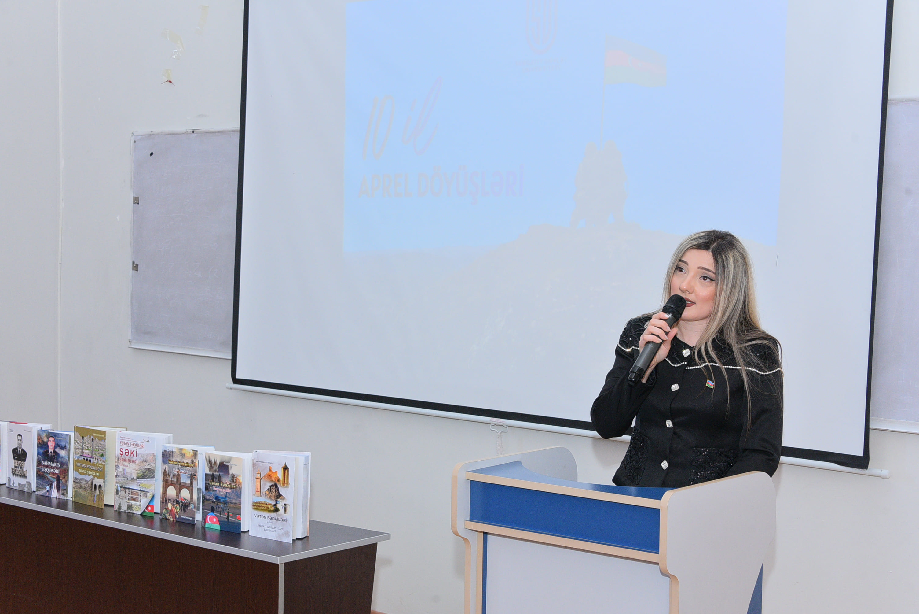 Tədbirin sonunda Manya Səxavətqızı şəhidlərimizə həsr olunan əsərlərini universitet kitabxanasına hədiyyə edib.