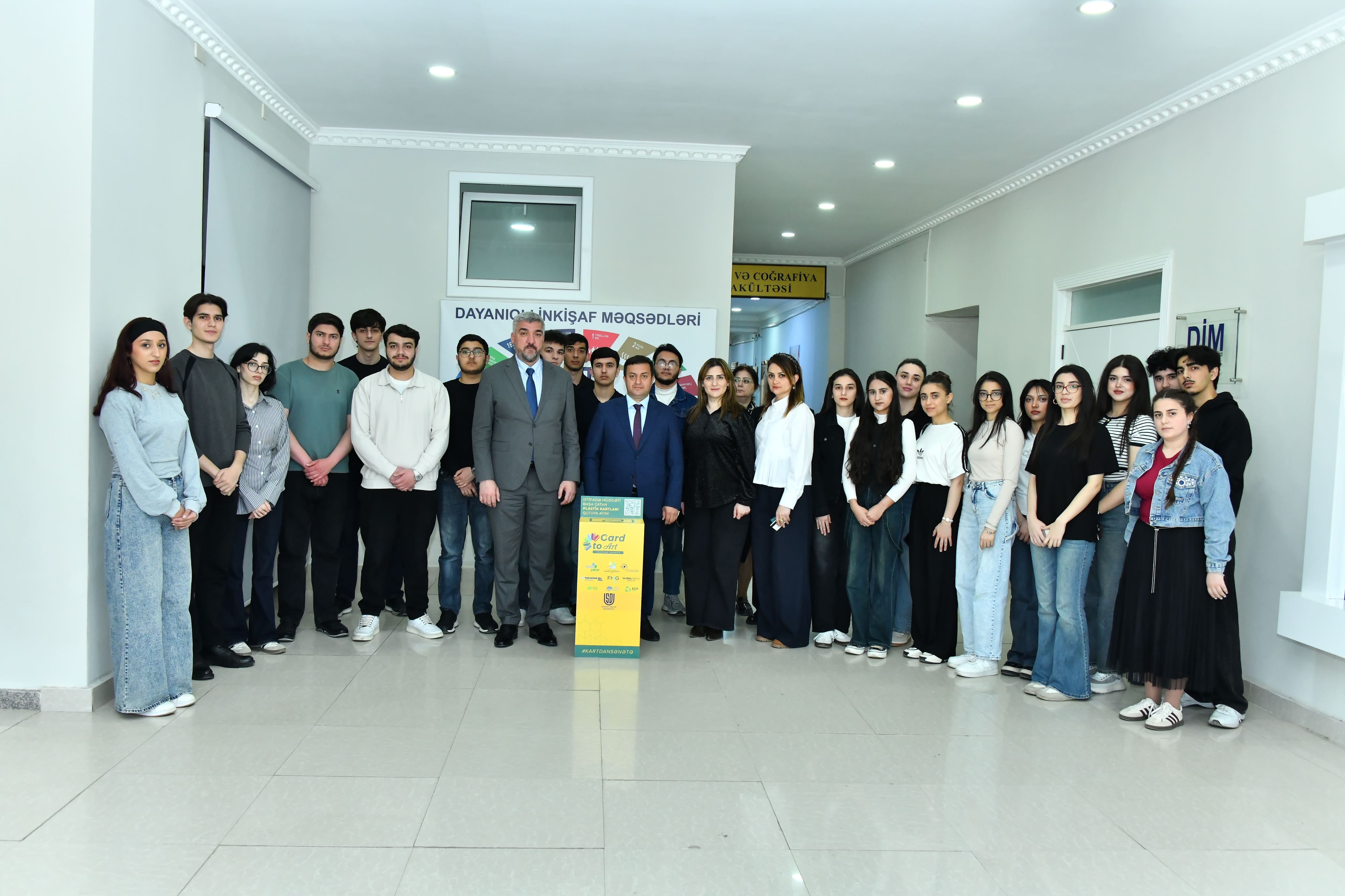 Aprelin 8-də Sumqayıt Dövlət Universitetində (SDU) Karyera və Məzunlarla iş Mərkəzinin təşkilatçılığı ilə “Card to Art” sosial layihəsinin təqdimatı baş tutub. “Təmiz Şəhər” ASC-nin təşəbbüsü ilə yaradılan, Yapı Kredi Bank Azərbaycanın tərəfdaş olduğu “Card to ART” (“Kartdan Sənətə”) sosial layihəsinin təqdimat mərasimi SDU Karyera və Məzunlarla iş Mərkəzinin direktoru Anar Dünyamalıyevin çıxışı ilə başladı. Mahiyyətində ekologiyamıza qayğı dayanan sosial layihəyə Sumqayıt Dövlət Universiteti əməkdaşları və tələbələrinin qoşulmasının yaddaqalan hadisə olduğunu deyən Mərkəz direktoru Universitetin “Təmiz Şəhər” ASC ilə əməkdaşlığından daha çox tələbələrin bəhrələndiyini bildirdi. “Təmiz Şəhər” ASC-nin şöbə müdiri Orxan Cabbarlı layihənin yaranma zərurəti barədə məlumat verdi. O, layihədə məqsədin sosial həyatımıza daxil olan müxtəlif təyinatlı plastik kartların istifadə müddəti başa çatandan sonra onların ekoloji mühitə ziyanvurma potensialından danışdı. Bildirildi ki, Layihənin məqsədi yararsız plastik kartların cəmiyyətimiz üçün faydalı etməkdir. Bunun üçün layihə çərçivəsində müxtəlif məkanlardakı qutularda toplanacaq plastik kartlar yaradıcı insanların əlində sənət əsərlərinə çevriləcək. O sənət əsərləri Heydər Əliyev Fondunun təşəbbüsü ilə yaradılan “Tullantıdan Sənətə” muzeyində təşkil ediləcək “Card to ART” sərgisində təqdim olunacaq.