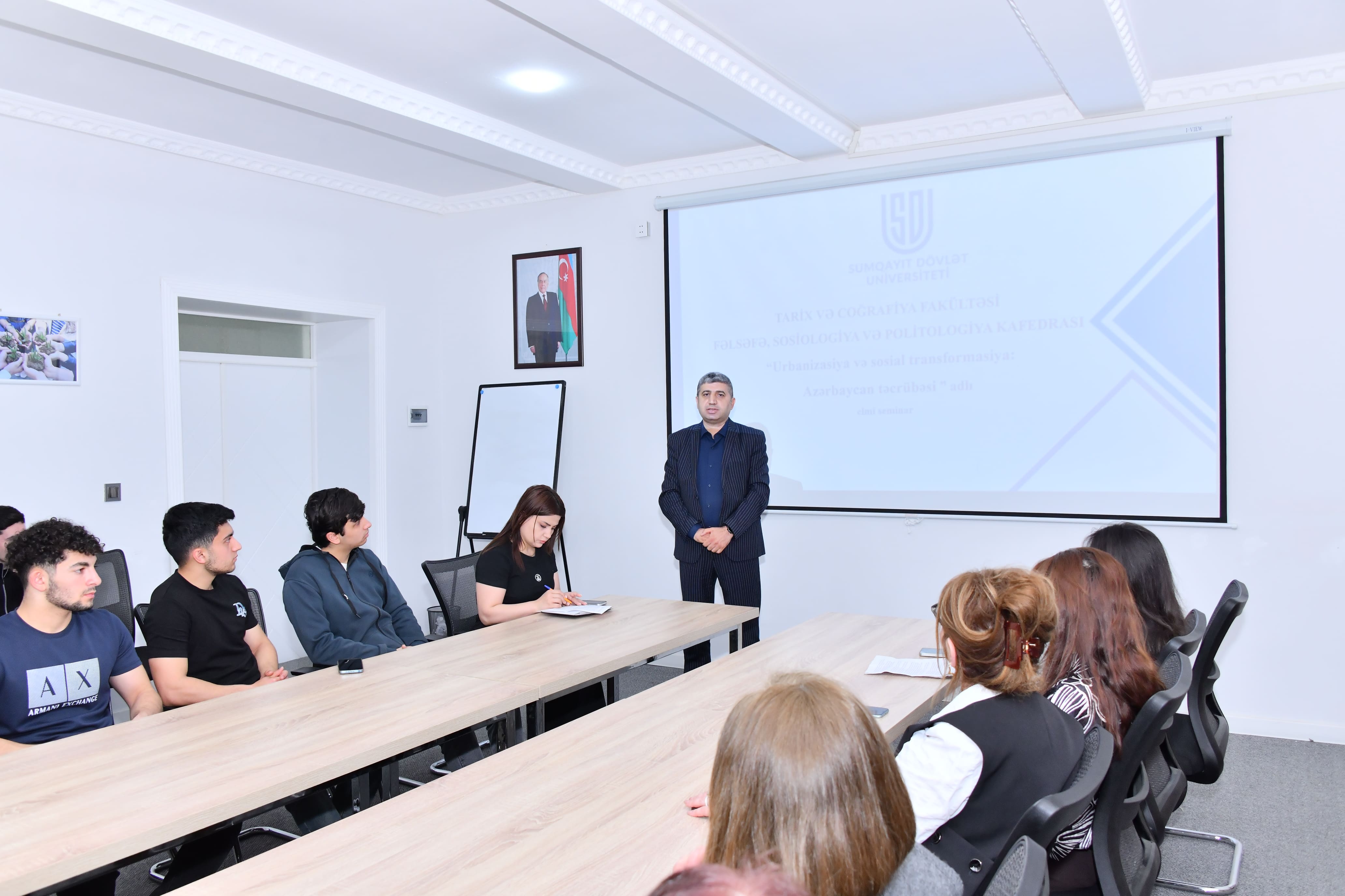 Aprelin 9-da Sumqayıt Dövlət Universitetində Tarix və coğrafiya fakültəsinin Fəlsəfə, sosiologiya və politologiya kafedrasın təşkilatşılığı ilə “Urbanizasiya və sosial transformasiya: Azərbaycan təcrübəsi” adlı elmi seminar keçirilib.