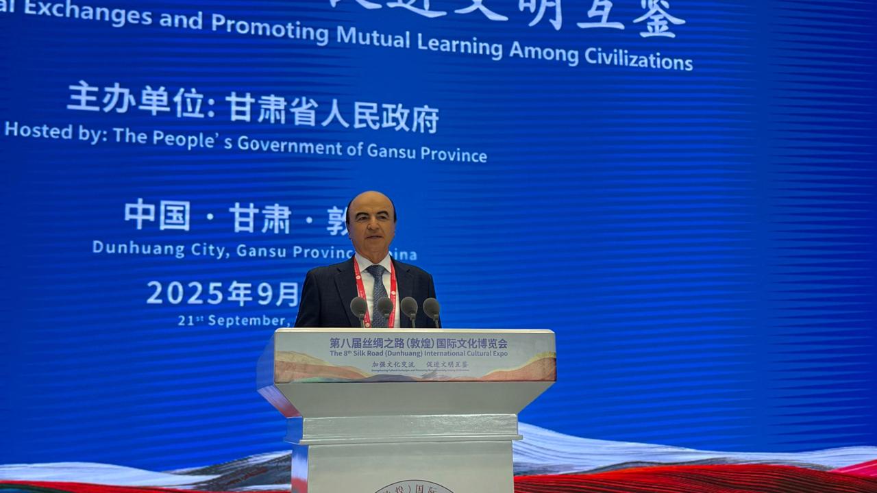On September 20-23, a delegation led by the acting rector of Sumgayit State University (SSU), corresponding member of ANAS, Professor Aminagha Sadigov, is participating in the "Belt and Road Universities Alliance Forum 2025" held in Dunhuang, Gansu Province, People"s Republic of China. On September 21, the delegation was also represented at the opening ceremony of the "8th International Silk Road Exhibition" organized within the framework of the Forum. The organizers of the exhibition, which has been held since 2016, are the Ministry of Culture and Tourism of the People"s Republic of China, the National Tourism Administration, and the People"s Government of Gansu Province. The event serves to expand cultural and academic cooperation among the "One Belt, One Road" countries. State officials, representatives of international organizations, public figures, and representatives of 95 universities from 24 countries around the world attended at the event. The main topics of the forum will be international cooperation between higher education institutions, the development of scientific and research projects, the creation of startup and innovation ecosystems, as well as the mutual exchange of students within the framework of the "Belt and Road" initiative. Professor Aminagha Sadigov, spoke and emphasized that participation in such forums allows Sumgayit State University to strengthen its position in the global education space, expand its international partnership network, and take university-industry cooperation to a new stage. He noted that location of SSU in an industrial city, the university"s open strategy for innovations, and the role of it plays in regional development create a favorable environment for international coo