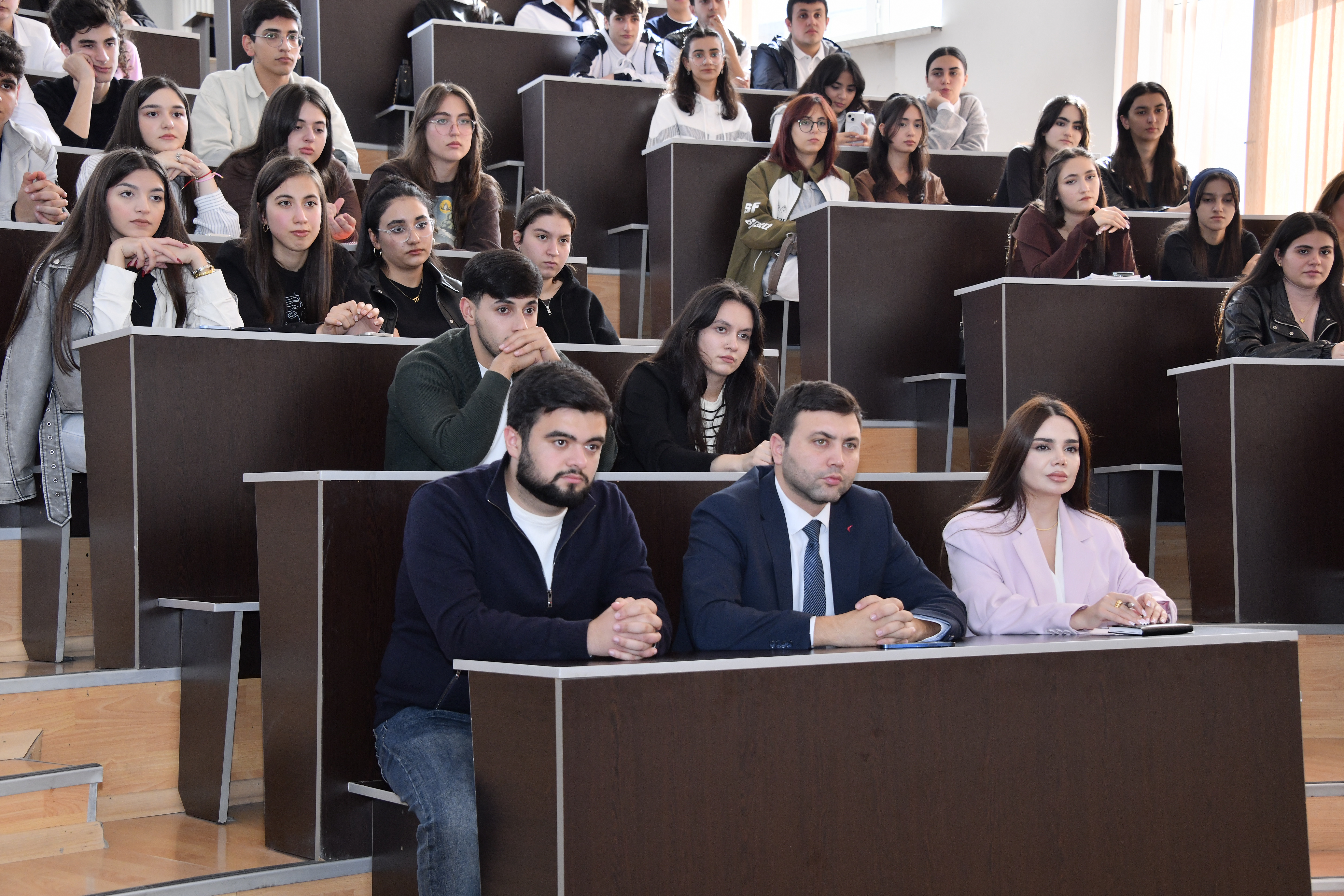 On October 23, a training was held on "Marketing and Customer Psychology" that organized by the Student Youth Organization. The main goal of the training was to increase students" knowledge of modern marketing trends, effective sales strategies, and psychological aspects of customer behavior, as well as to develop their practical skills in this area. At the event, founder of Nomail and Digital Product Sales, a specialist with extensive experience in startups and marketing, Agshin Nabizade made a presentation on the topic "The Role of Customer Psychology". He informed the participants about the effects of human behavior on marketing, emotional decision-making mechanisms, and the importance of psychological factors in shaping buyer habits. During his speech, Agshin Nabizade emphasized that the greatest tool in marketing is the human brain, therefore, understanding customer psychology is a key condition for successful sales and effective marketing.