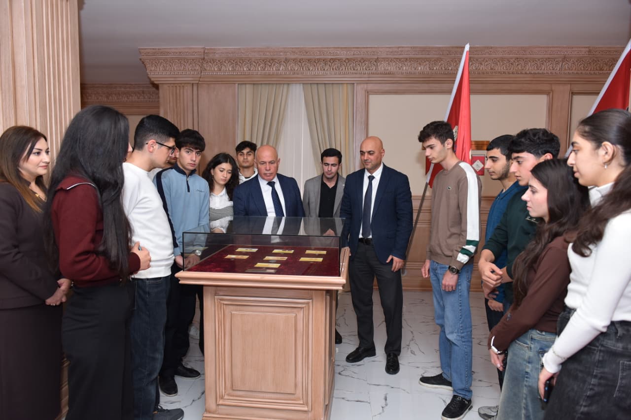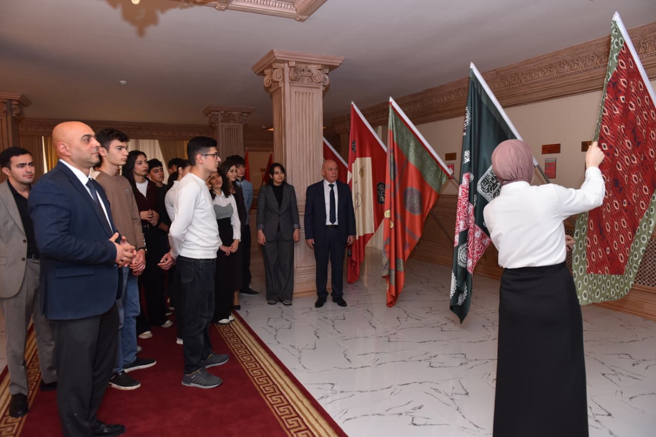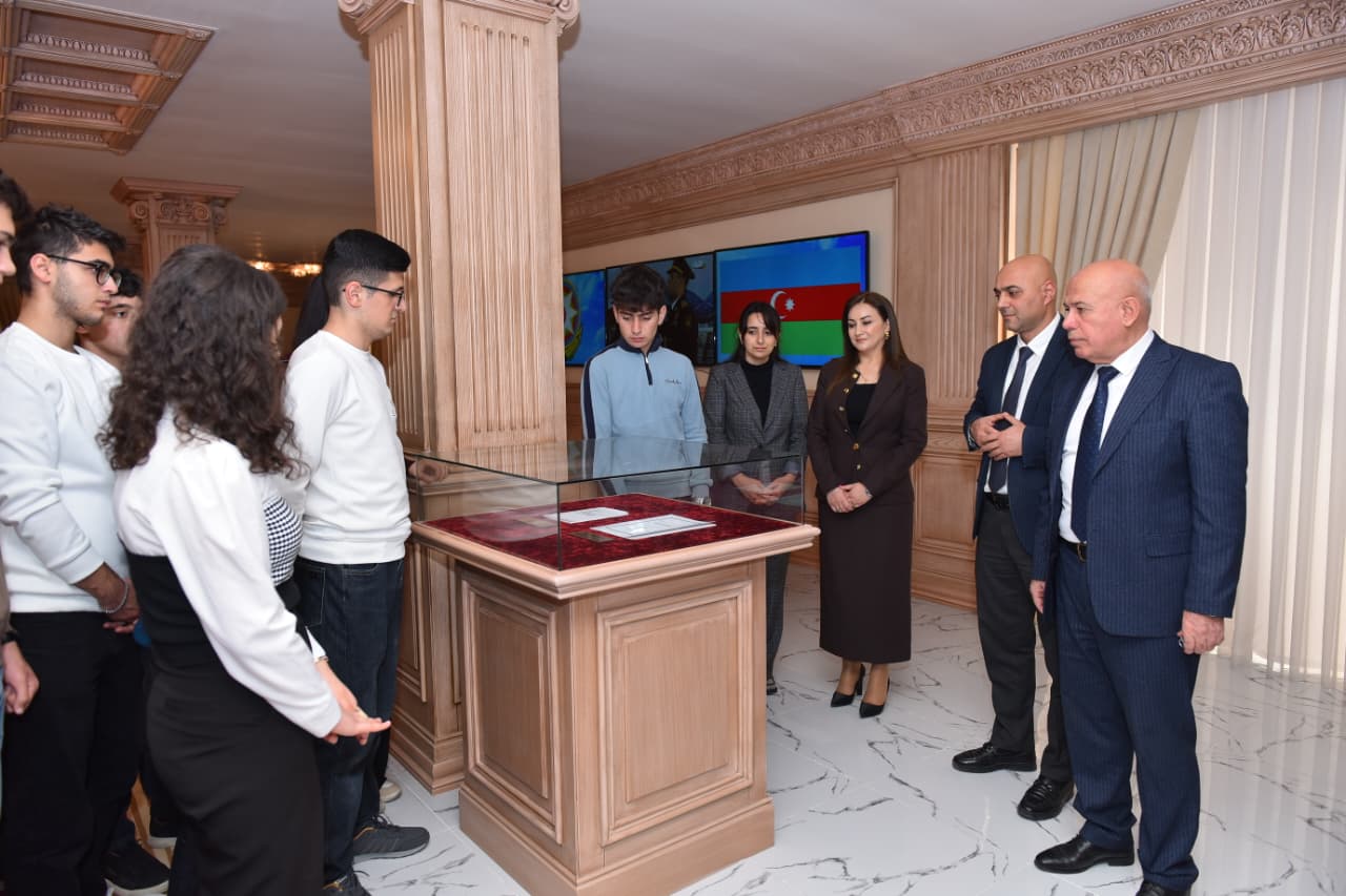 First, a minute of silence was observed in memory of the martyrs who sacrificed their lives for the territorial integrity of Azerbaijan. Head of the Department of History of Azerbaijan and Eastern European Peoples of the Faculty of History and Geography, Professor Shirkhan Salimov opened the event and spoke about the history of our tricolor flag and its importance as the main symbol of our national statehood. The professor noted that the celebration of the National Flag Day is directly related to the history of the Azerbaijan Democratic Republic. Looking back at history, the professor said that the tricolor National Flag of the Azerbaijan Democratic Republic was first raised in Baku on November 9, 1918, and had state status until April 1920. This flag was approved as the state flag of the Nakhchivan Autonomous Republic on November 17, 1990, at the initiative and leadership of the Chairman of the Supreme Assembly of the Nakhchivan Autonomous Republic, the National Leader of our people, Heydar Aliyev, and was restored as the State Flag of the Republic of Azerbaijan by the Constitutional Act adopted on October 18, 1991. The professor added that Heydar Aliyev's decree dated March 13, 1998, is of great importance in the promotion and raising of state attributes, especially our tricolor flag. Shirkhan Salimov also noted that President Ilham Aliyev has taken important steps to keep our flag flying high. The decrees he signed on November 17, 2007, establishing the National Flag Square, and on November 17, 2009, establishing the National Flag Day, are important historical events in this field. On May 29, 2010, the Guinness World Records Organization confirmed the Azerbaijani National Flagpole as the tallest flagpole in the world, and the National Flag Museum was established on the Square. Today, thanks to the leadership of President Ilham Aliyev and the heroism of the brave Azerbaijani Army, the sovereignty of our country has been fully ensured. As a result of the bravery of our victorious army, our tricolor flag flies proudly and majestically in every city and village liberated from occupation. At the same time, the Azerbaijani flag today rises on the most prestigious pedestals in the world, demonstrating to the whole world the power of our state, the unity of our people, and national pride. Then, the head teacher of the department, Parviz Jafarov, delivered a speech on the topic “The Tricolor Flag – the ideological foundation of Azerbaijani statehood and a symbol of national unity”, and Namaz Mammadov, a student of group 865 of the Faculty of History and Geography, delivered a speech on the topic “Our Tricolor Flag – a symbol of pride of independent Azerbaijan”. They pointed out that the Azerbaijani flag is one of the highest national symbols that today expresses the power of our independent state, the unity of our people and the determined spirit. At the end of the event, discussions were held, and the importance of our tricolor flag in our history and as a symbol of our statehood today was emphasized once again. Finally, the event participants took an excursion to the Sumgayit Flag Museum and closely studied the history of the Azerbaijani flag and the stages of development of state symbols.