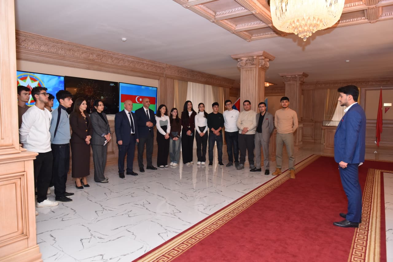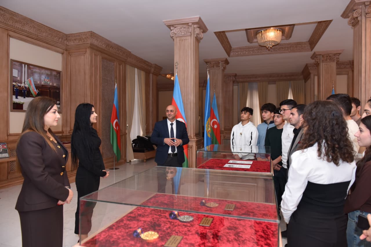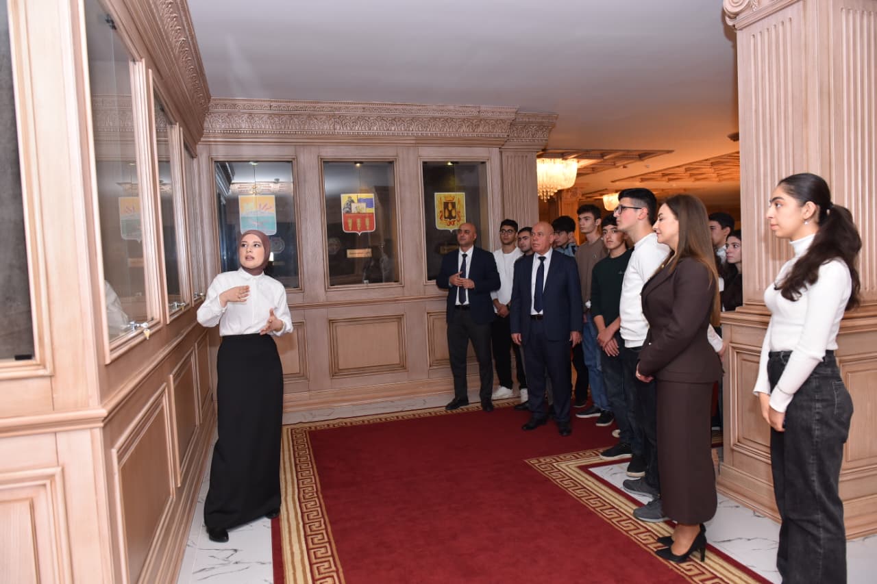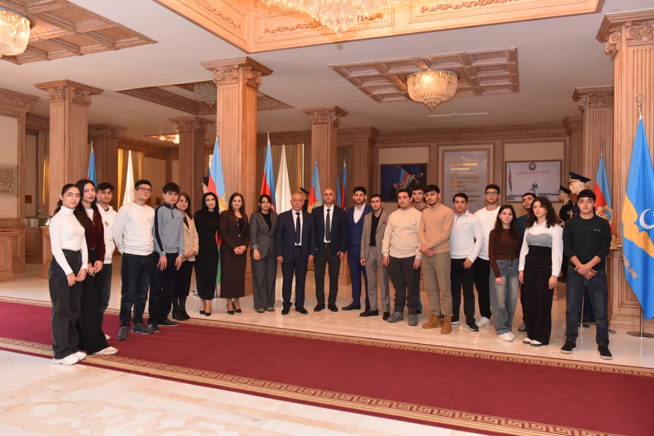 First, a minute of silence was observed in memory of the martyrs who sacrificed their lives for the territorial integrity of Azerbaijan. Head of the Department of History of Azerbaijan and Eastern European Peoples of the Faculty of History and Geography, Professor Shirkhan Salimov opened the event and spoke about the history of our tricolor flag and its importance as the main symbol of our national statehood. The professor noted that the celebration of the National Flag Day is directly related to the history of the Azerbaijan Democratic Republic. Looking back at history, the professor said that the tricolor National Flag of the Azerbaijan Democratic Republic was first raised in Baku on November 9, 1918, and had state status until April 1920. This flag was approved as the state flag of the Nakhchivan Autonomous Republic on November 17, 1990, at the initiative and leadership of the Chairman of the Supreme Assembly of the Nakhchivan Autonomous Republic, the National Leader of our people, Heydar Aliyev, and was restored as the State Flag of the Republic of Azerbaijan by the Constitutional Act adopted on October 18, 1991. The professor added that Heydar Aliyev's decree dated March 13, 1998, is of great importance in the promotion and raising of state attributes, especially our tricolor flag. Shirkhan Salimov also noted that President Ilham Aliyev has taken important steps to keep our flag flying high. The decrees he signed on November 17, 2007, establishing the National Flag Square, and on November 17, 2009, establishing the National Flag Day, are important historical events in this field. On May 29, 2010, the Guinness World Records Organization confirmed the Azerbaijani National Flagpole as the tallest flagpole in the world, and the National Flag Museum was established on the Square. Today, thanks to the leadership of President Ilham Aliyev and the heroism of the brave Azerbaijani Army, the sovereignty of our country has been fully ensured. As a result of the bravery of our victorious army, our tricolor flag flies proudly and majestically in every city and village liberated from occupation. At the same time, the Azerbaijani flag today rises on the most prestigious pedestals in the world, demonstrating to the whole world the power of our state, the unity of our people, and national pride. Then, the head teacher of the department, Parviz Jafarov, delivered a speech on the topic “The Tricolor Flag – the ideological foundation of Azerbaijani statehood and a symbol of national unity”, and Namaz Mammadov, a student of group 865 of the Faculty of History and Geography, delivered a speech on the topic “Our Tricolor Flag – a symbol of pride of independent Azerbaijan”. They pointed out that the Azerbaijani flag is one of the highest national symbols that today expresses the power of our independent state, the unity of our people and the determined spirit. At the end of the event, discussions were held, and the importance of our tricolor flag in our history and as a symbol of our statehood today was emphasized once again. Finally, the event participants took an excursion to the Sumgayit Flag Museum and closely studied the history of the Azerbaijani flag and the stages of development of state symbols.