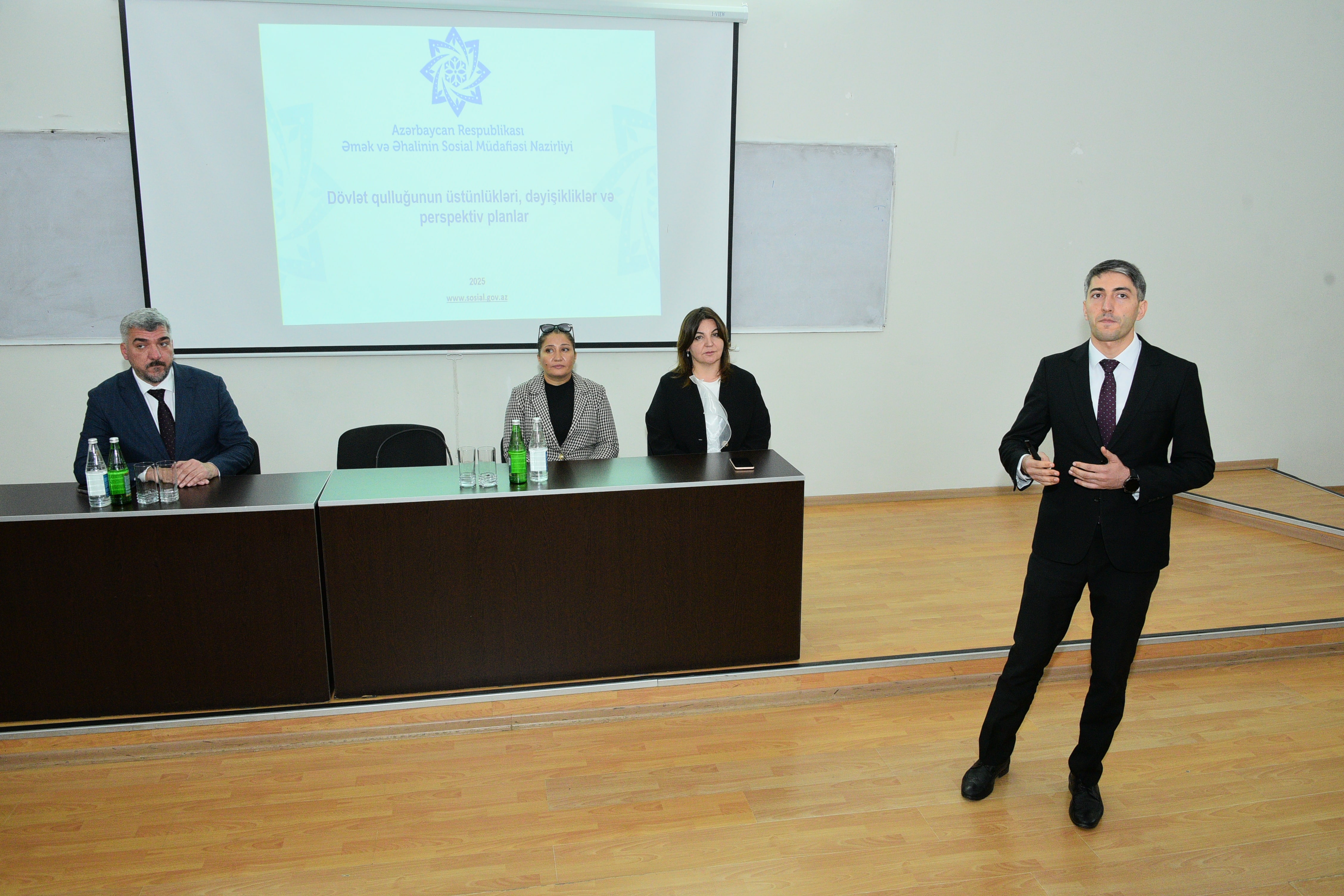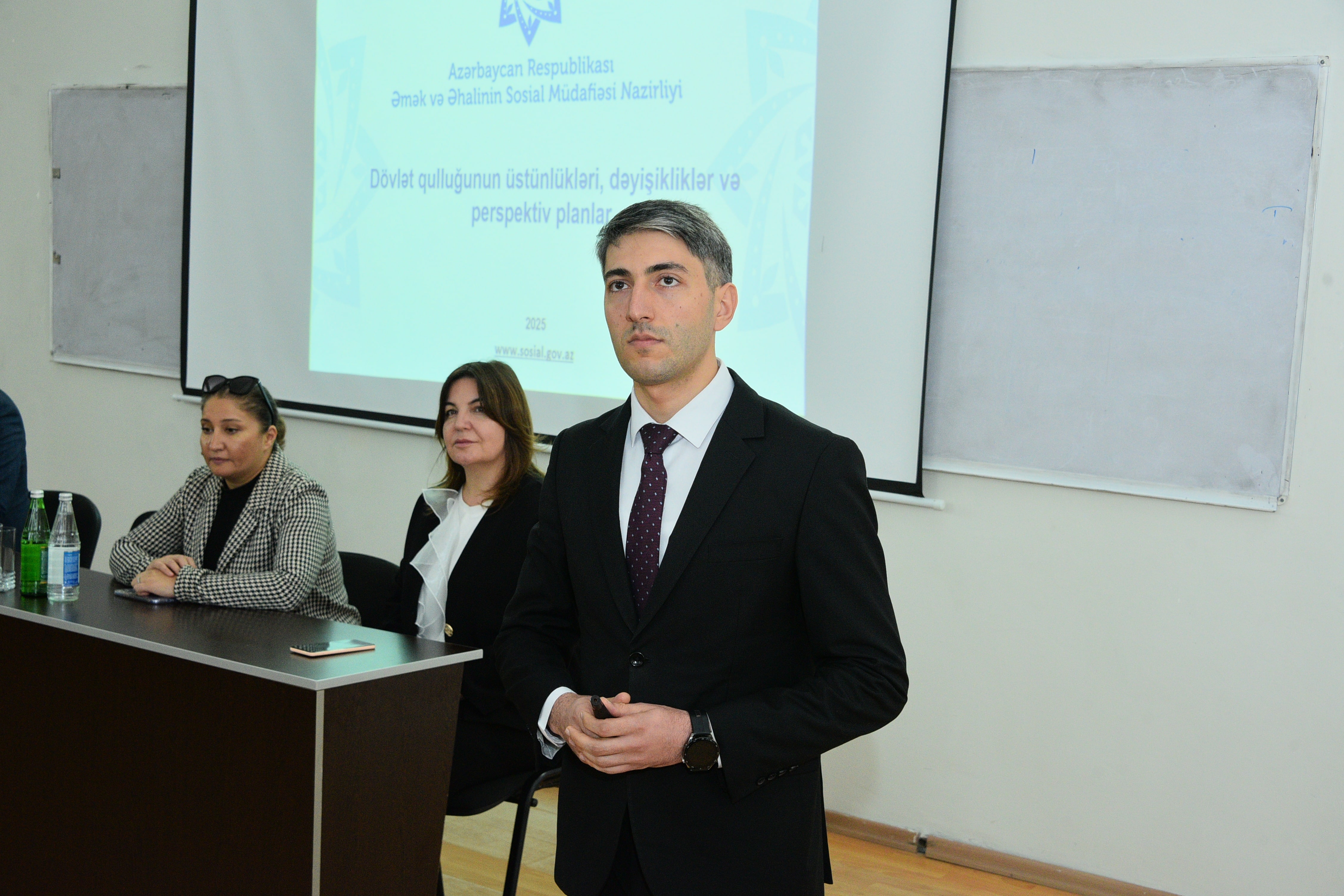 On November 14, an educational seminar was held at Sumgayit State University on the advantages of the Civil Service: Changes and future plans with the participation of the employees of the Ministry of Labour and Social Protection of Population of the Republic of Azerbaijan. Director of the Career and Alumni Center, Anar Dunyamaliyev opened the event, greeted the guests and gave information about the purpose of the seminar to the participants. He emphasized that the event is of great importance in terms of increasing the interest of the youth for the civil service, providing students with information about this field, support them in career planning. After that, senior advisor in Ministry of the Labour and Social Protection of Population, Hasanaga Huseynov made a speech and spoke about legal basis of the civil service system, existing opportunities for civil servants, admission procedures, examination and selection mechanisms, the stages of interview. He spoke about the civil service recruitment process is carried out on the basis of the principles of transparency and equal opportunities, and spoke about the growing role of young people in public administration. Seminar has proceeded interactively, numerous questions of the students were answered. A number of recommedations were given to the the youth about preparation for the civil service, exam strategies and career development.