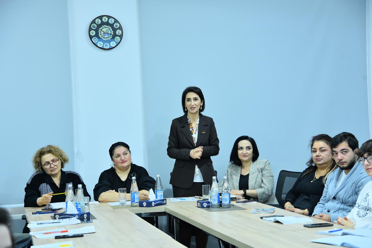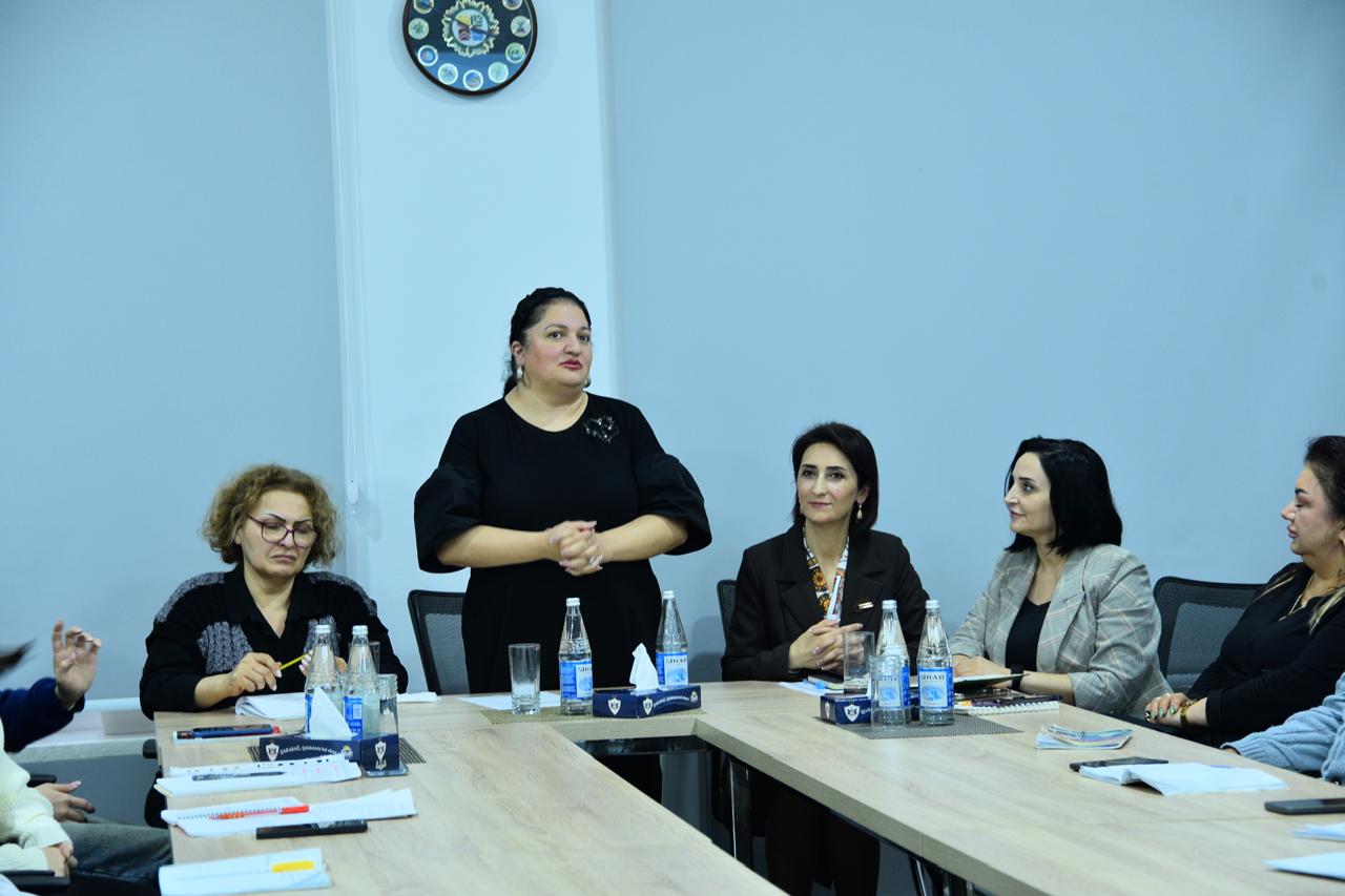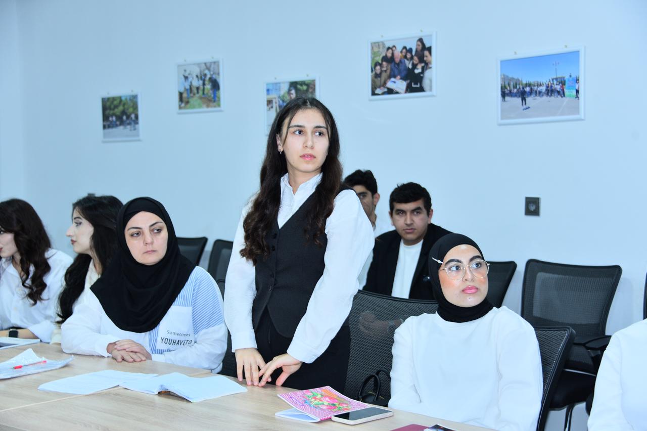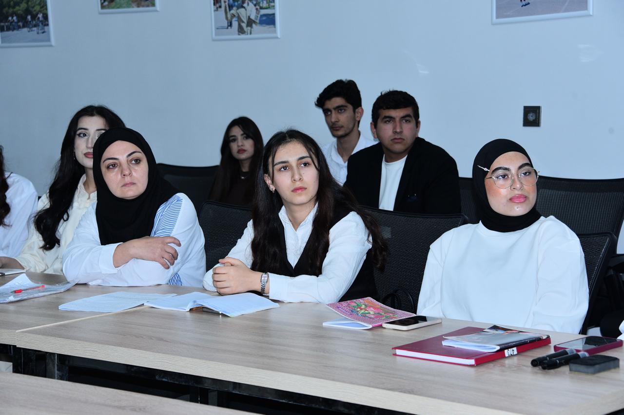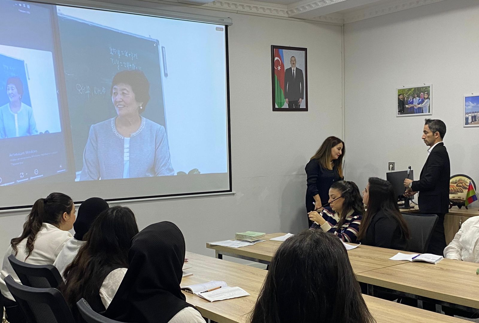 On December 4, a joint lesson was held at the Faculty of Mathematics with the joint initiative of the Department of Mathematical Analysis and Differential Equations of Sumgayit State University (SSU) and the Department of Mathematics and Its Teaching Method of Atyrau State University named after Khalel Dosmukhamedov, Kazakhstan. Head of the Mathematical Analysis and Differential Equations Department, associate professor Khayala Seyfullayeva opened the event, welcomed the guests and emphasized the importance of the scientific-pedagogical cooperation between the two universities. Then, professor of the Mathematics and Its Teaching Method Department of Atyrau State University, candidate of technical sciences, Aygul Mirzasheva and teacher of the Mathematical Analysis and Differential Equations Department of Sumgayit State University, doctor of philosophy in mathematics, Leyla Nasirova presented a joint lesson to the students. They took turns explaining the four methods of constructing Zhegalkin polynomial and held interactive discussions to deepen their understanding of the topic. Director of the Teaching Methodological Center, doctor of philosophy in economics, Elnara Mammadova noted that the class was organized professionally, and such joint initiatives make a great contribution to the students’ scientific outlook and learning motivation. At the end of the event, dean of the Mathematics Faculty, associate professor, Khalide Hasanova expressed her gratitude to the organizers and teachers who visited, and wished this successful cooperation would continue.
