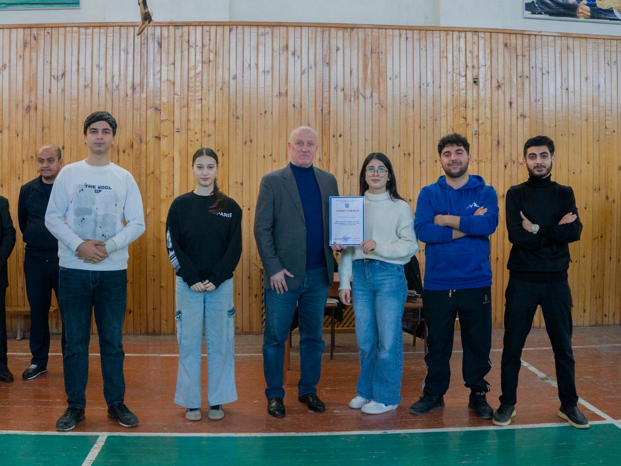 Vice-rector for Social Affairs and Public Relations, associate professor Elmar Khalilov opened the event and stated that such sport competitions make a great contribution to making student life more motivated. The development of sports at the university not only strengthens the physical fitness of students, but also serves to increase their social activity. A team of students from Sumgayit State University and Sumgayit State Technical College participated in the competition. According to the results of the competition, the Faculty of Natural Sciences was awarded first place, the Faculty of Engineering was awarded second place, the team of the Faculty of Sumgayit State Technical College was awarded third place.