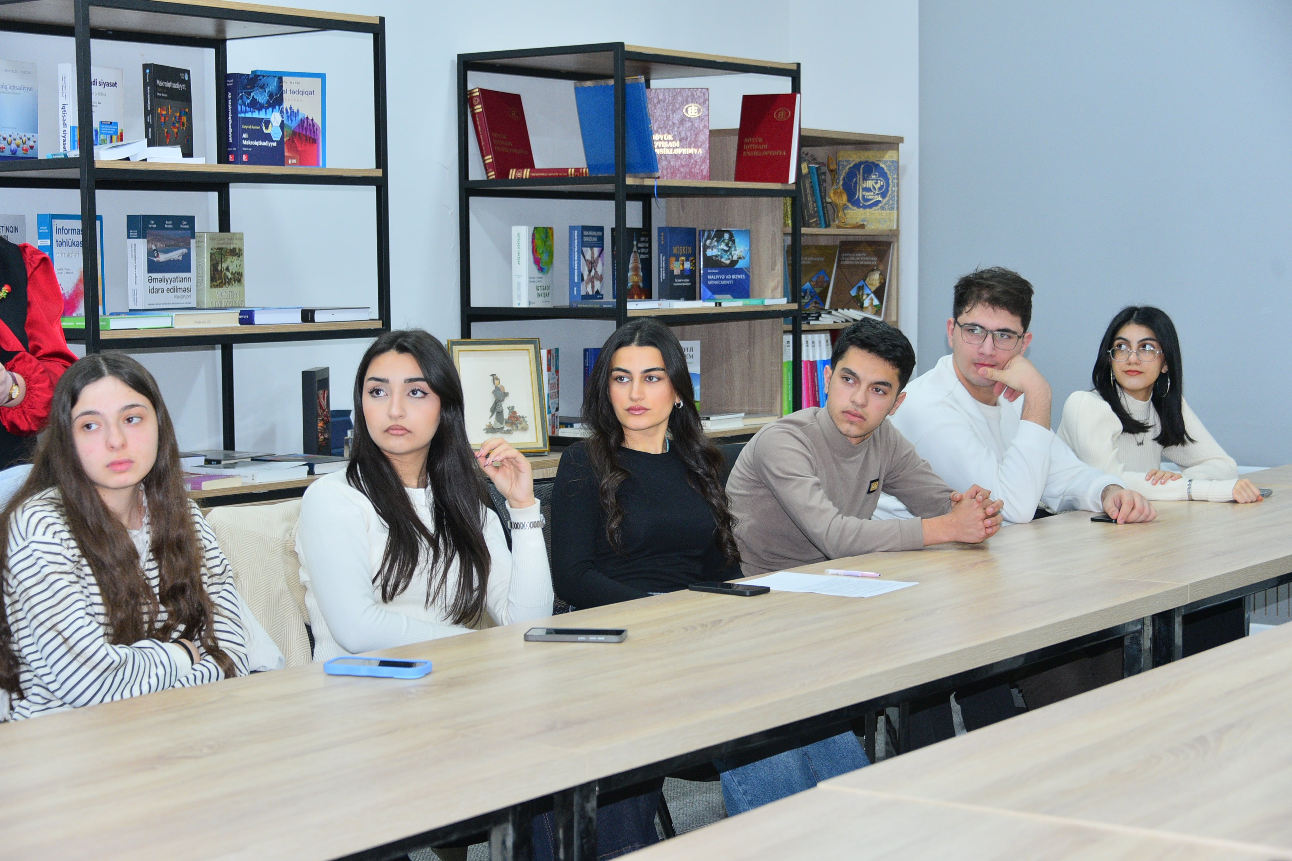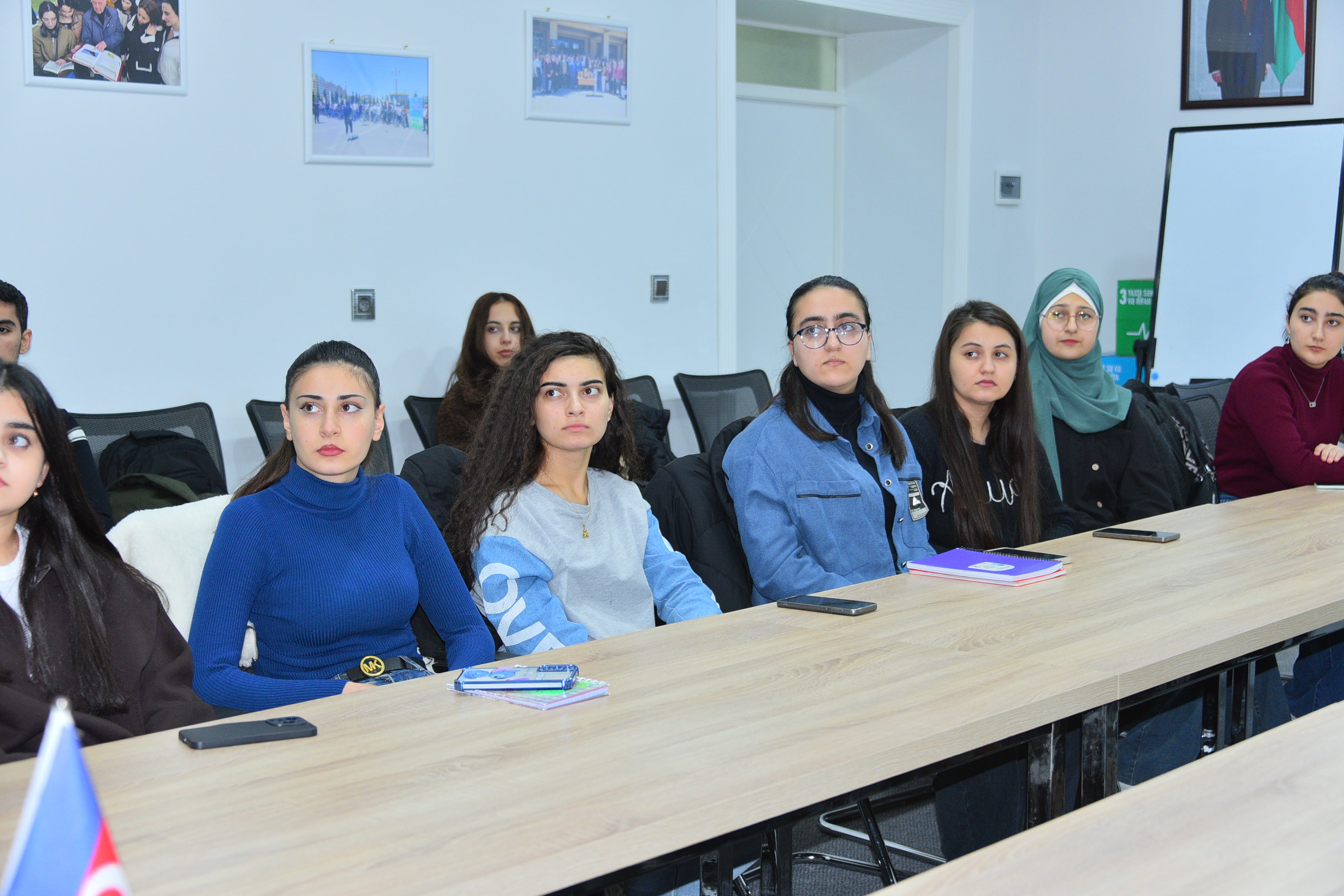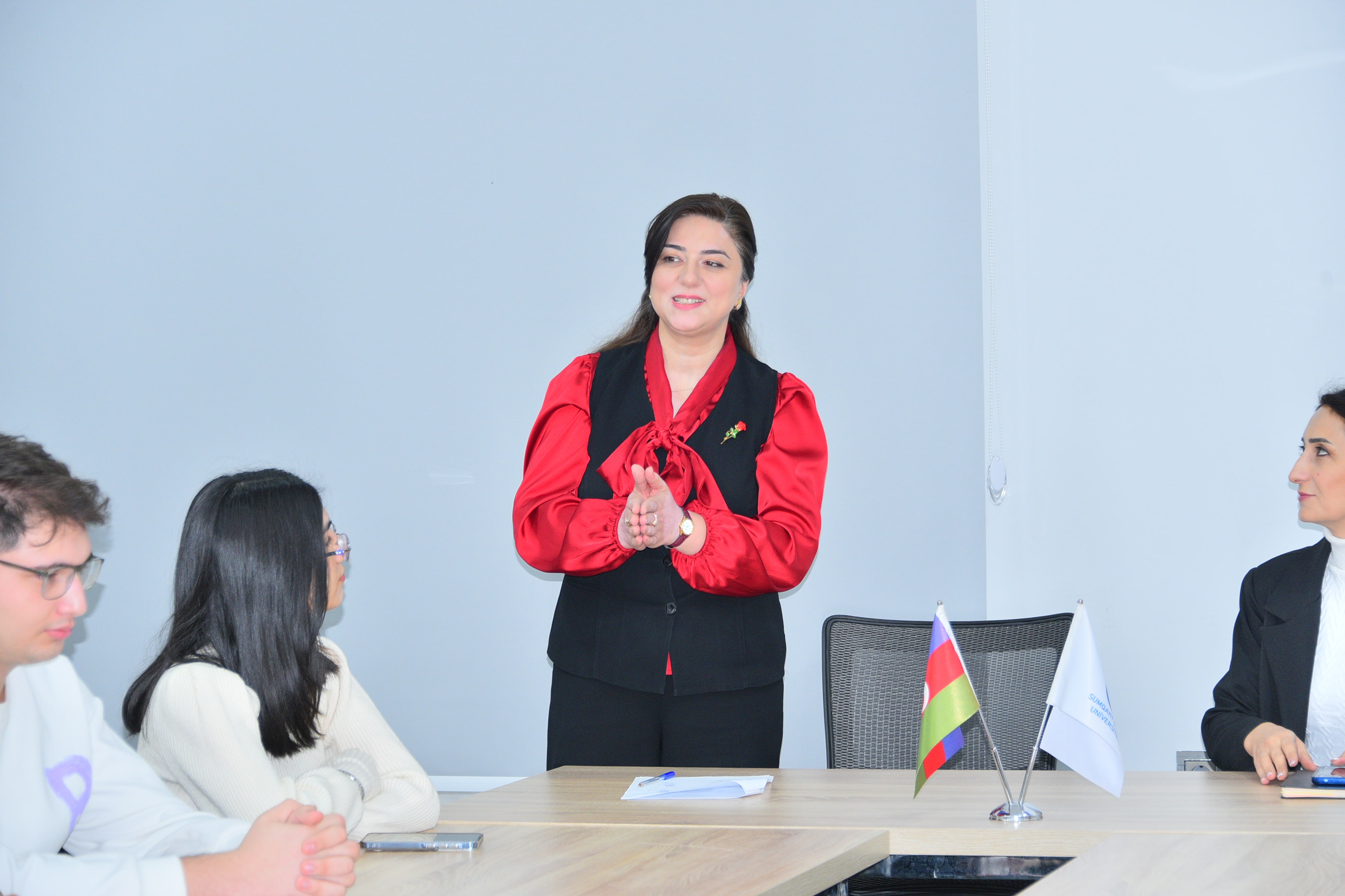 On December 16, a meeting was organized with the group representatives of the first-year students of the Faculties of Philology, Natural Sciences, at the initiative of the Quality Assurance and Strategy Department. Director of the Teaching and Methodological Center, Associate Professor Elnare Memmedova, the department’s employees and the group representatives attended the meeting. Director of the Teaching and Methodological Center, Associate Professor Elnare Memmedova provided students with the information about the teaching and learning process, assessment mechanisms and work carried out in this field. A specialist of the Quality Assurance and Strategy Department, Shams Shirinova made a speech and gave detailed information about the main aspects of the department’s activities, the surveys conducted to measure student satisfaction, and the importance of active participation in these surveys. She spoke about the mechanisms for organizing surveys, as well as practices such as interviews, suggestion boxes, and open door days, and encouraged the group representatives to be actively involved in these processes. In addition, information was provided by the department’s staff about the innovations implemented at the university based on the survey results. At the end of the meeting, the questions and suggestions of the participants were listened to, and discussions were held on various topics. It should be noted that on December 12, a meeting on the same topic was held by the Quality Assurance and Strategy Department with the group representatives of the faculties of Mathematics, History and Geography, Economics and Management.