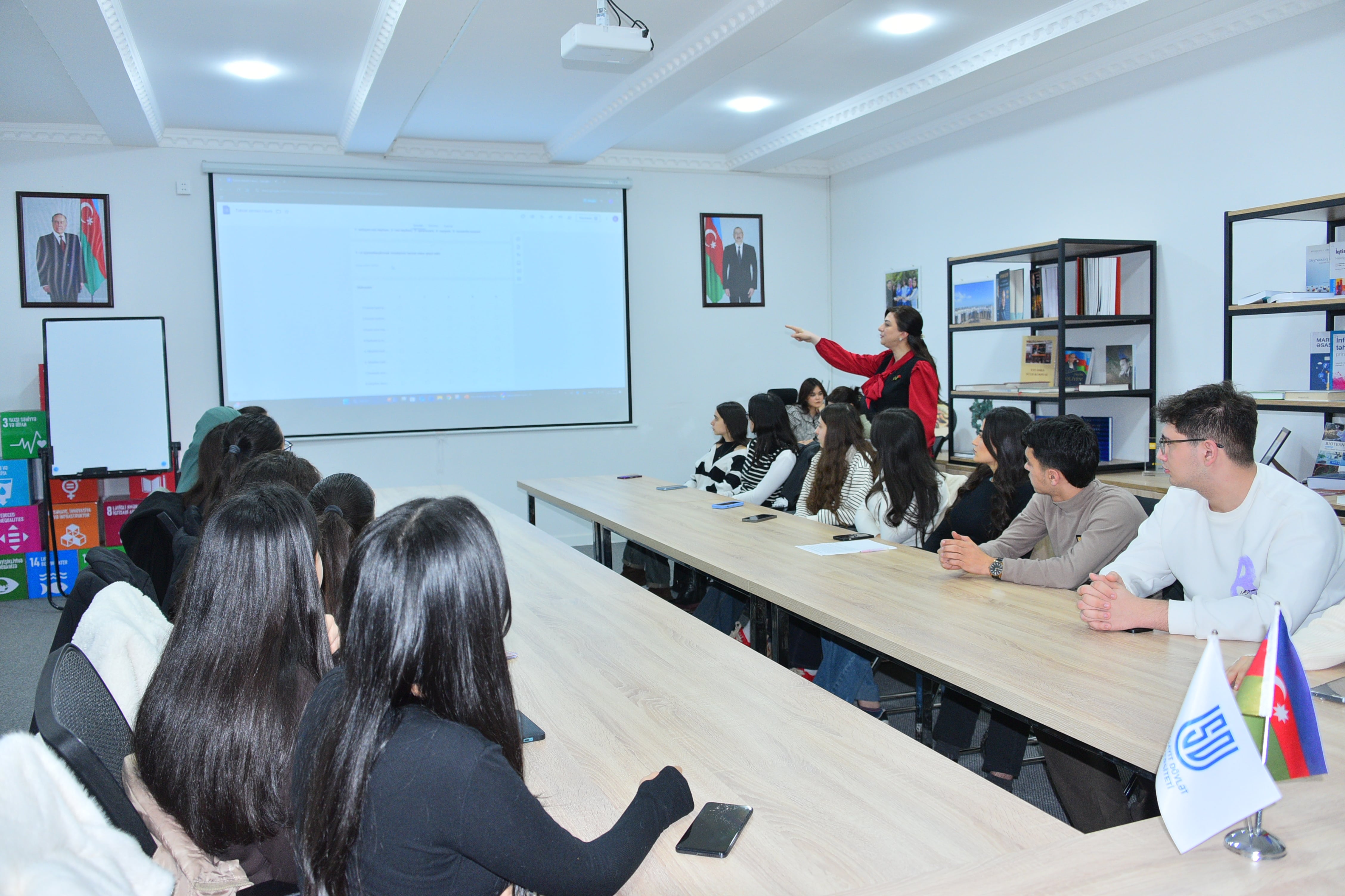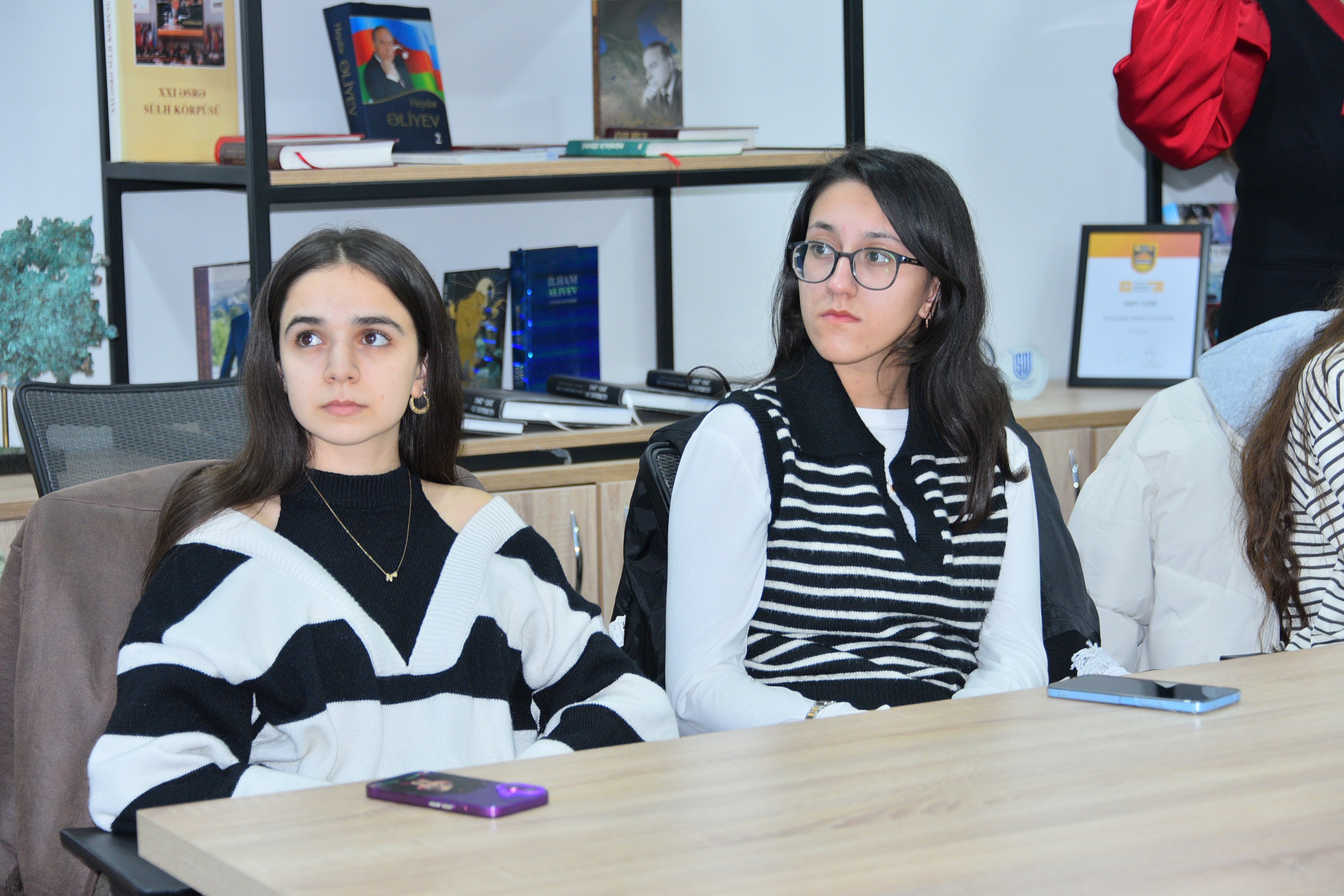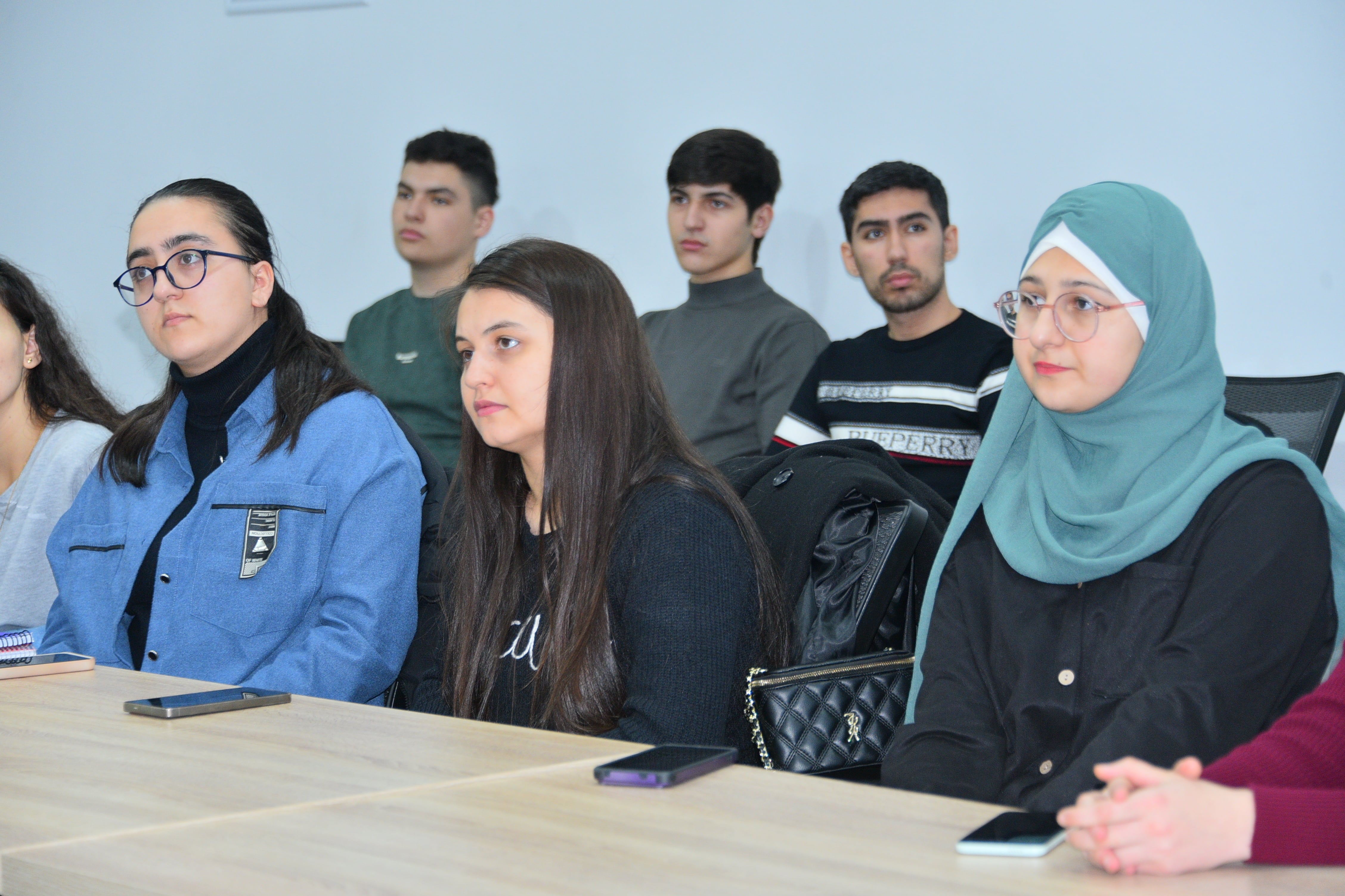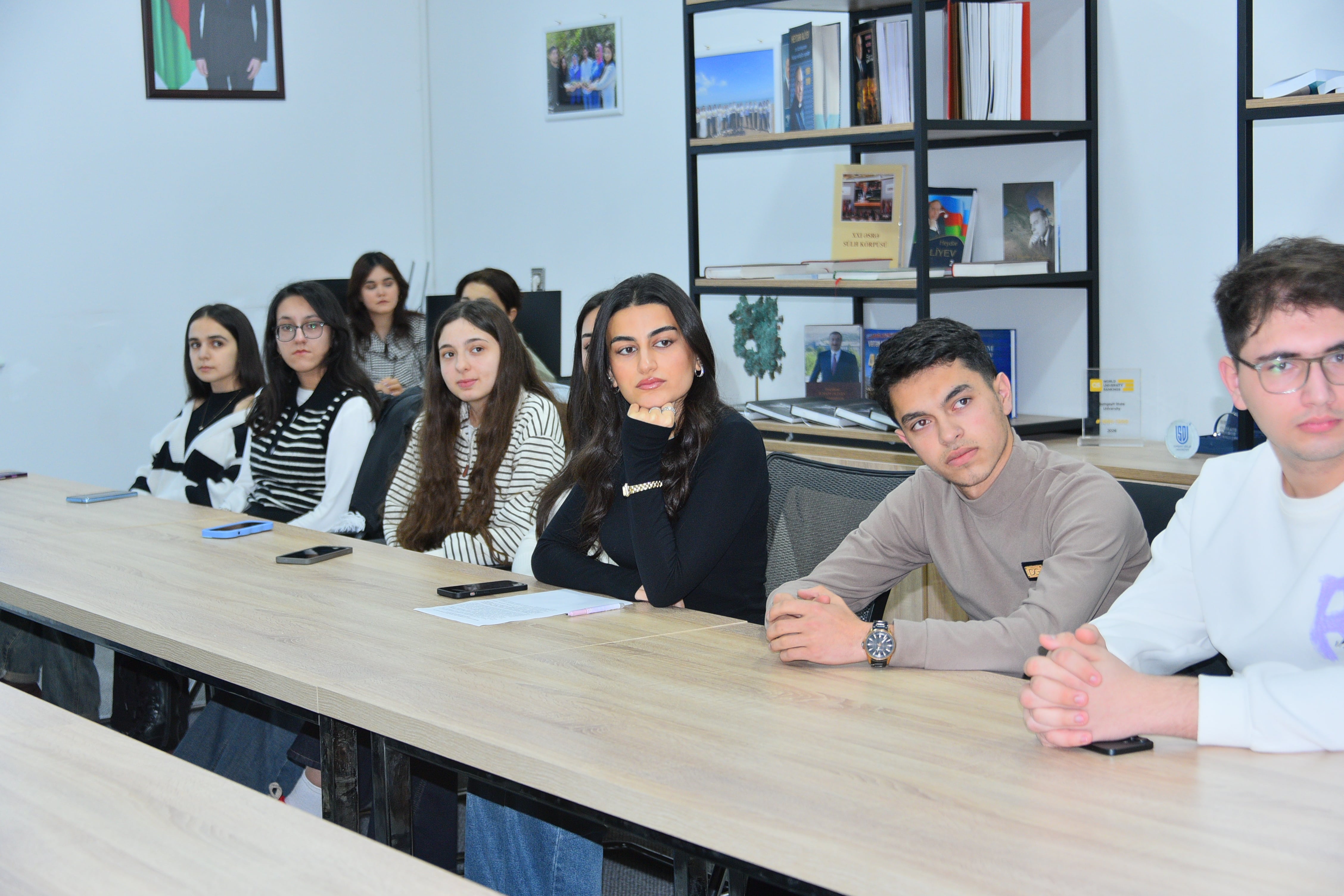 On December 16, a meeting was organized with the group representatives of the first-year students of the Faculties of Philology, Natural Sciences, at the initiative of the Quality Assurance and Strategy Department. Director of the Teaching and Methodological Center, Associate Professor Elnare Memmedova, the department’s employees and the group representatives attended the meeting. Director of the Teaching and Methodological Center, Associate Professor Elnare Memmedova provided students with the information about the teaching and learning process, assessment mechanisms and work carried out in this field. A specialist of the Quality Assurance and Strategy Department, Shams Shirinova made a speech and gave detailed information about the main aspects of the department’s activities, the surveys conducted to measure student satisfaction, and the importance of active participation in these surveys. She spoke about the mechanisms for organizing surveys, as well as practices such as interviews, suggestion boxes, and open door days, and encouraged the group representatives to be actively involved in these processes. In addition, information was provided by the department’s staff about the innovations implemented at the university based on the survey results. At the end of the meeting, the questions and suggestions of the participants were listened to, and discussions were held on various topics. It should be noted that on December 12, a meeting on the same topic was held by the Quality Assurance and Strategy Department with the group representatives of the faculties of Mathematics, History and Geography, Economics and Management.