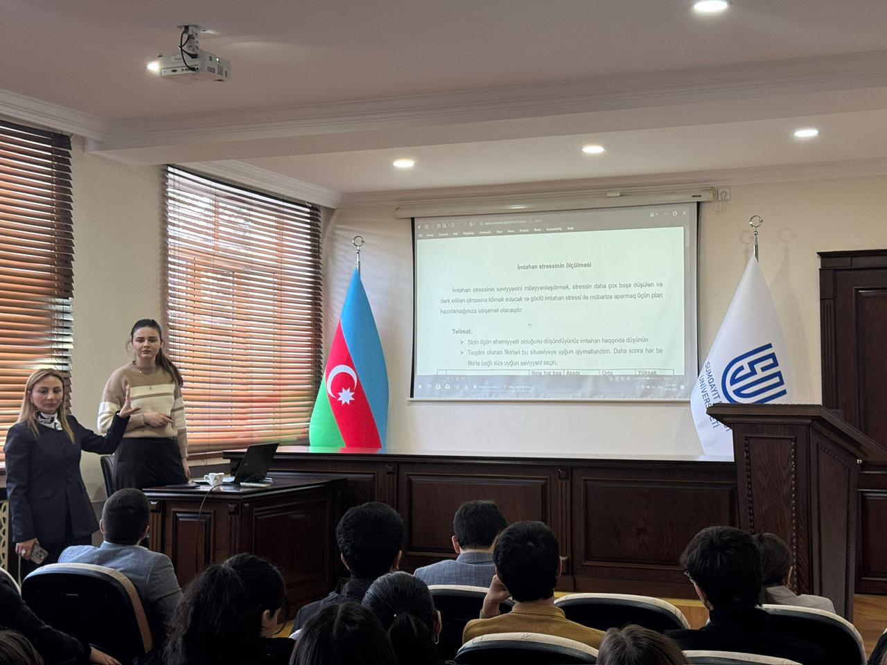On December 19, an educational training on the topic "Manage Your Anxiety, Show Your Knowledge" was held, jointly organized by the Psychological Service Center of Sumgayit State University and the Student Trade Union Committee.