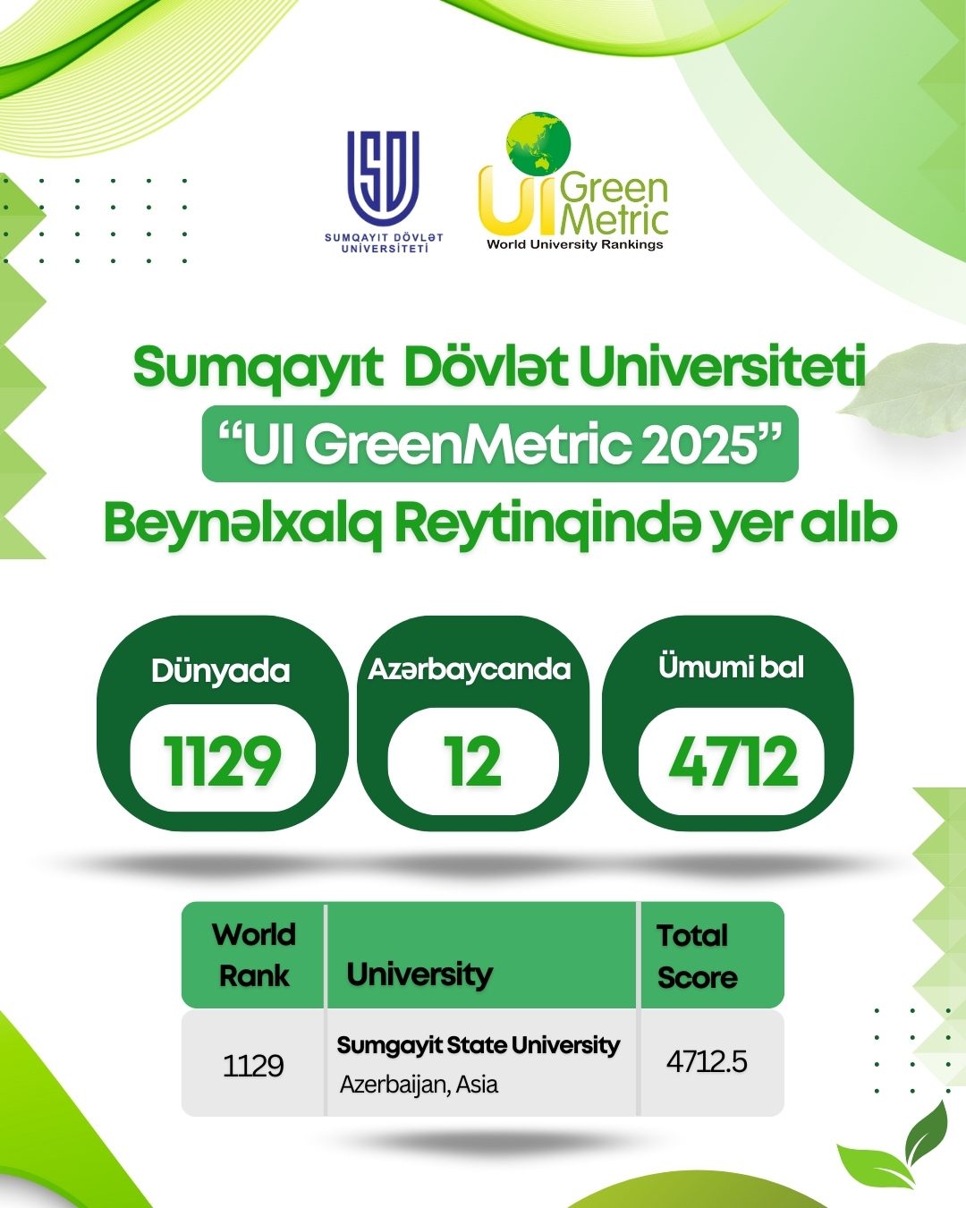 As a result of its consistent activities implemented in the sustainability field, Sumgayit State University (SSU) ranked in 1129th in the “UI GreenMetric 2025” International Ranking.... Read more